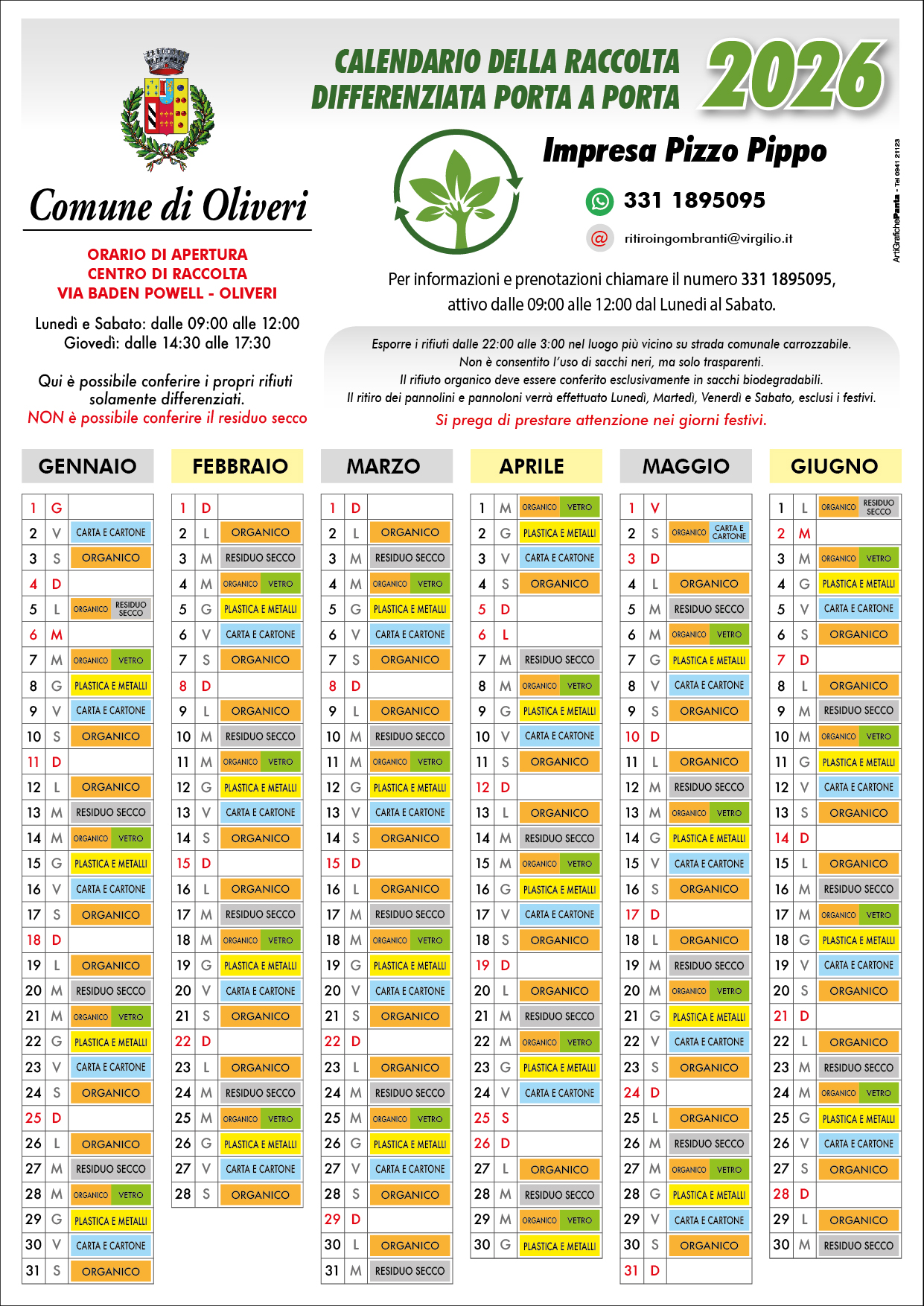 - Avviso nuovi orari apertura centro comunale di raccolta dal 27 ottobre 2025